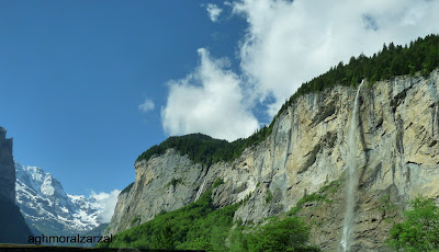Según nos acercábamos a Trummelbach, los saltos de agua, saliendo de las paredes rocosas,